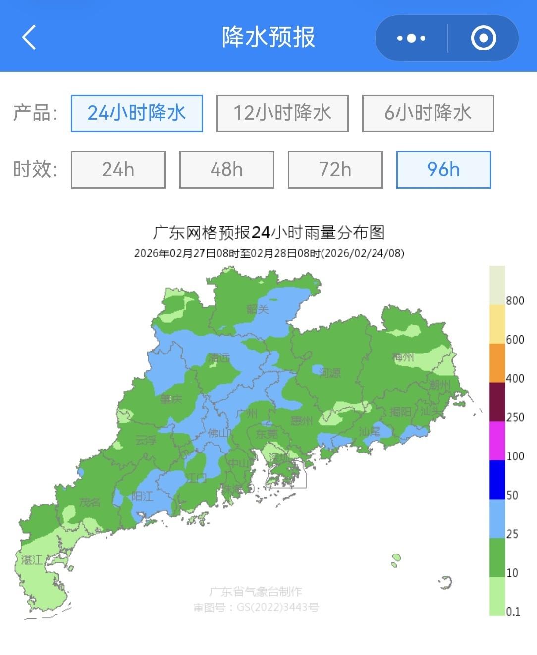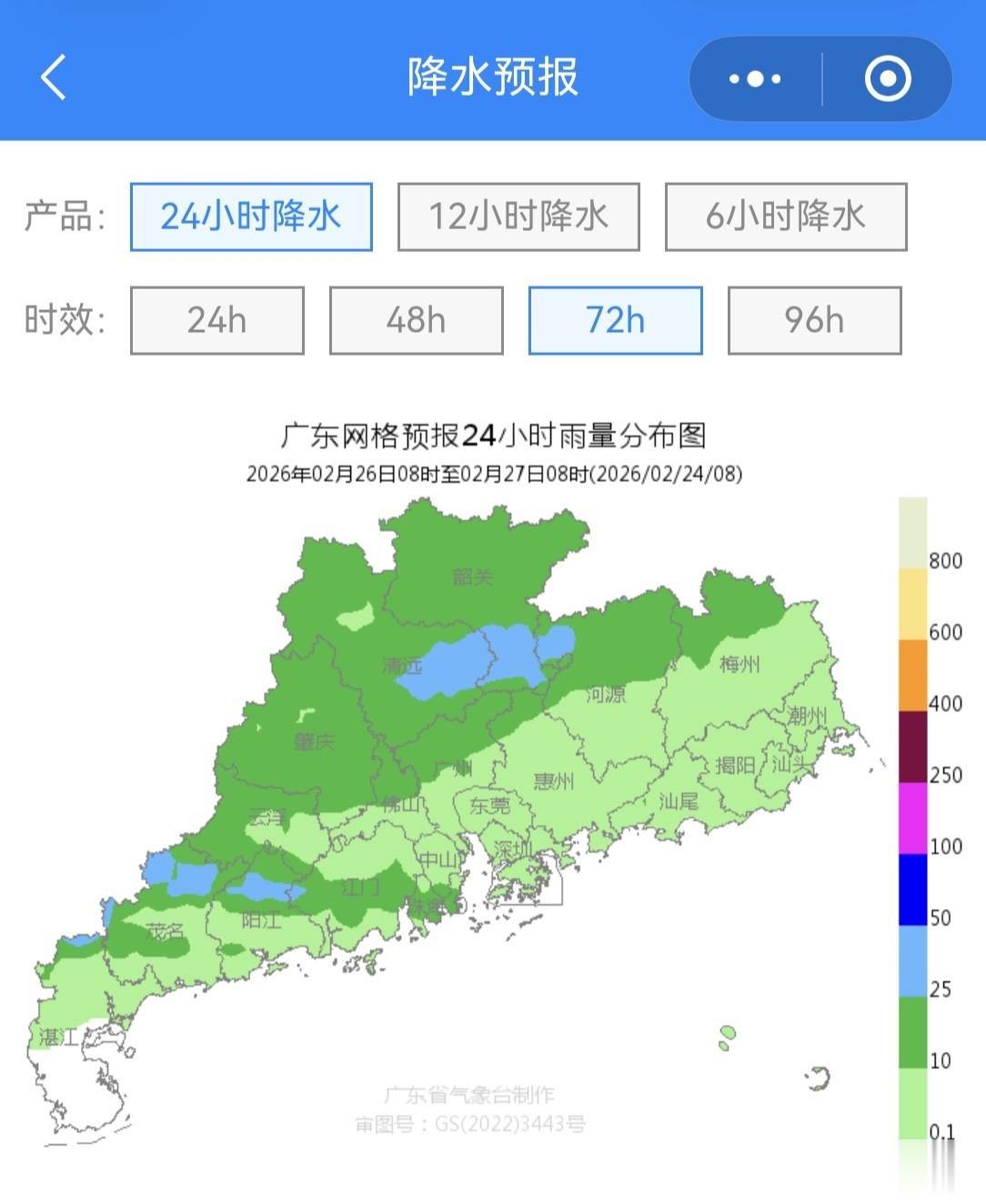 广东自北向南有一次中到大雨局部暴雨的降水过程