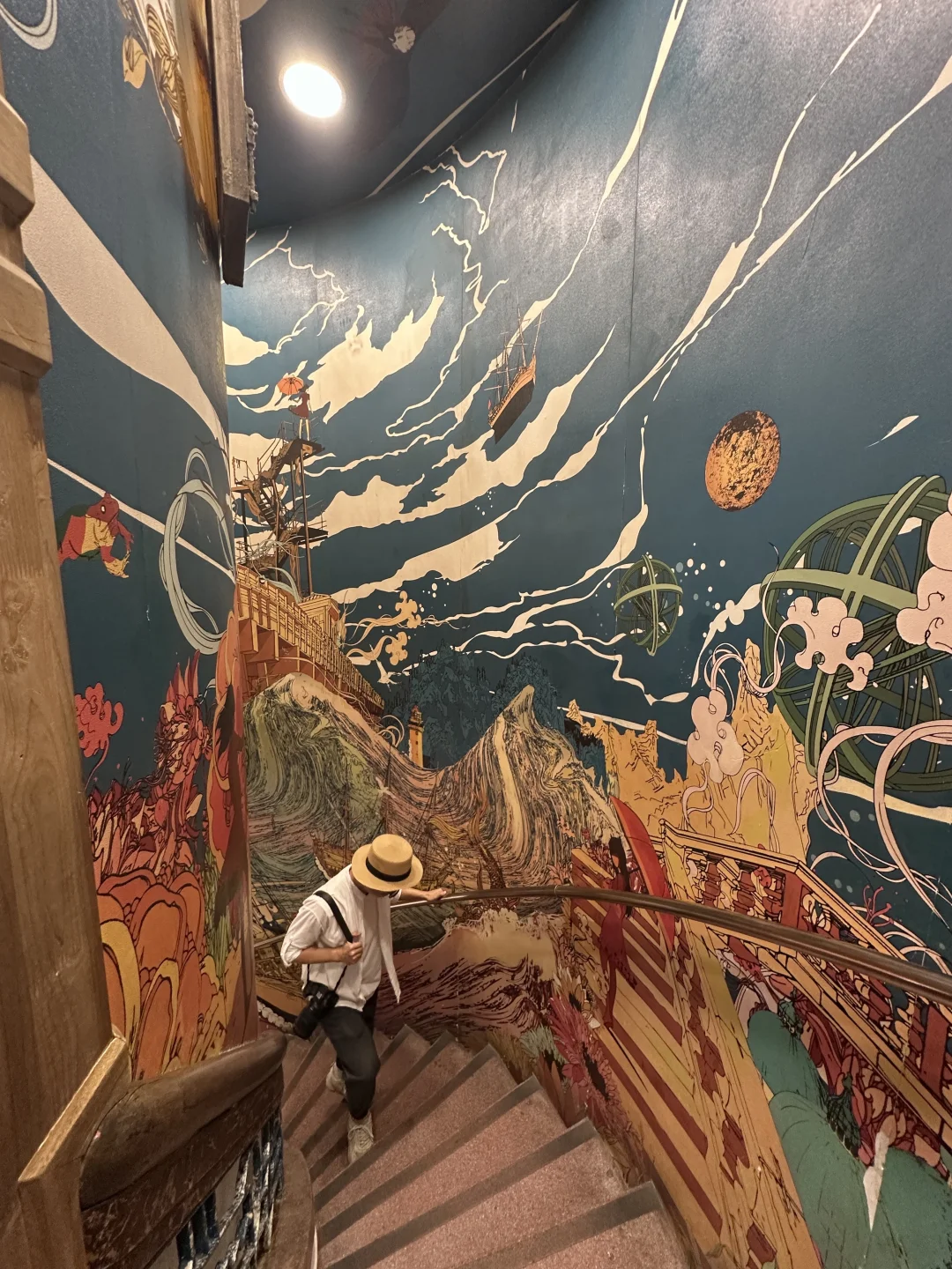 满洲窗、弧形楼道、壁画墙、老花砖等等时不时还有各种展览