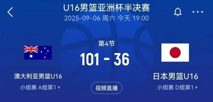U16男篮亚洲杯半决赛战罢,日本U16男篮四节比赛单节得分最高不过10分,其中三节得分只有个位数,最终以36-101不敌澳大利亚U16男篮,以令人绝望的差距输掉了比赛。 通过本场比赛,日本男篮年轻一代在亚洲篮坛问鼎的可能性被完全摧毁。虽然引进四名混血球员,但是日本球员在身体天赋上的差距遭遇澳大利亚球员无情碾压,所谓的战术默契和个人基本功完全没有发挥的空间,导致此前四战全胜挺进半决赛的日本男篮在身体和心理上都遭到了无情的碾压。经此一战,日本青年男篮对于未来的目标,可能会有重新的认识?#U16亚洲杯# #日本U16男篮65分惨败澳大利亚#