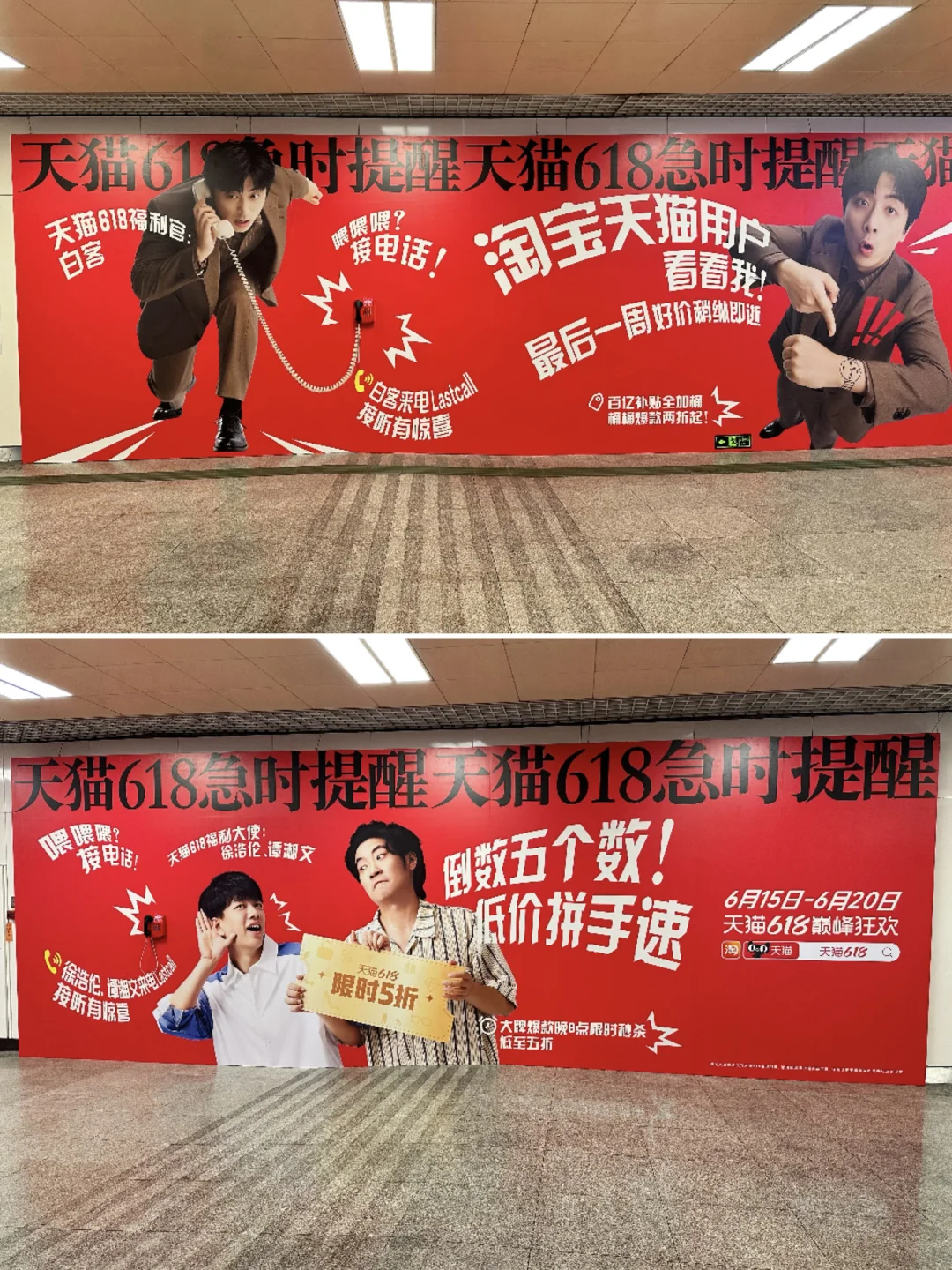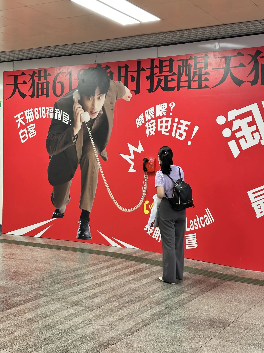 路过体育西路站,看到好大一副天猫618广告牌 还有一个电话机☎️写着“接电话”,看着蛮有意思 好奇拿起电话📞 听了下竟然是白客来电提醒天猫618即将结束啦 好啦好啦知道啦 安排打开天猫🛒下单🤭 ☎️打卡点:🚇体育西路站A口地面