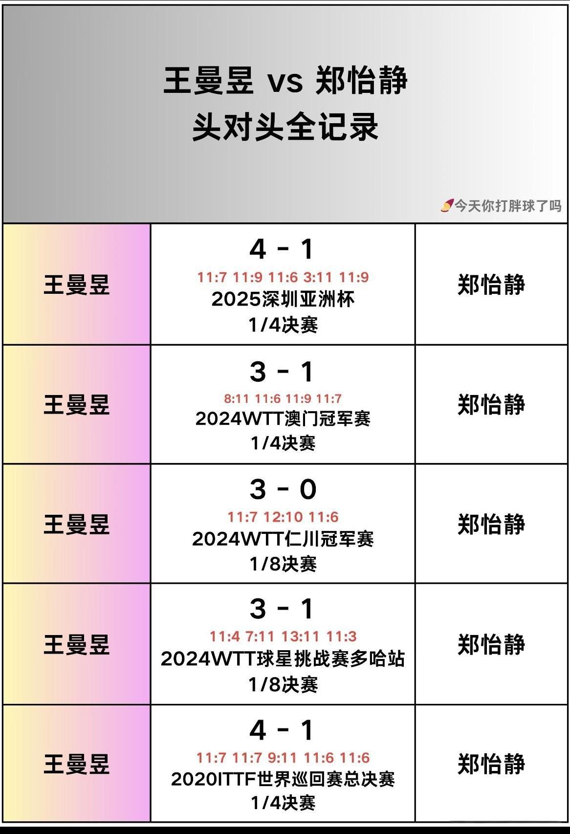 王曼昱目前在澳门备战,即将出战新赛季首站赛事——WTT澳门冠军赛。在训练中,她是全神贯注,一点都不马虎。 过去的失利会成为王曼昱前进的动力,她针对郑怡静做足准备,这种不服输的劲儿值得称赞,相信她能在训练中不断打磨自己。 教练组的战术布置很关键,王曼昱与教练配合默契,能更好地把战术运用到比赛里,尤其对关键分的波动处理,要格外的细致,这次训练不单单是练兵,而是要从中想到压制郑怡静正手短球的弱点。 相信曼昱做好困难准备,不轻敌,一分一分打,一场一场拿。把优势转化为胜势,给大家带来一场精彩的对决。曼昱加油!