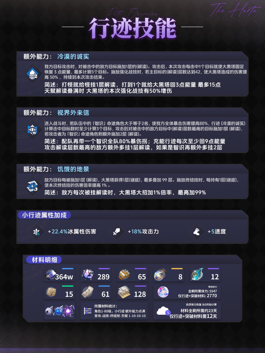 大家好,这里是辣条~ 本期是大黑塔的角色攻略~ ————————————— 如有遗漏/错误欢迎指出,共同进步~ 最近新玩家/回坑玩家多,大家友善讨论哦~ ————————————— 星穹铁道攻略 崩坏星穹铁道创作者激励计划 崩坏星穹铁道 大黑塔 星穹铁道日更挑战 星穹铁道配队 星穹铁道大黑塔 翁法罗斯 theherta