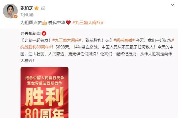 张柏芝在外网发了今天九三盛大阅兵现场的照片,并配文称:“为祖国点赞!”不少网友也纷纷为她点赞:“爱国的艺人永远不会差”,“好样的,点赞”!#张柏芝生图# #张柏芝# #张柏芝合唱# #张柏芝旧照#