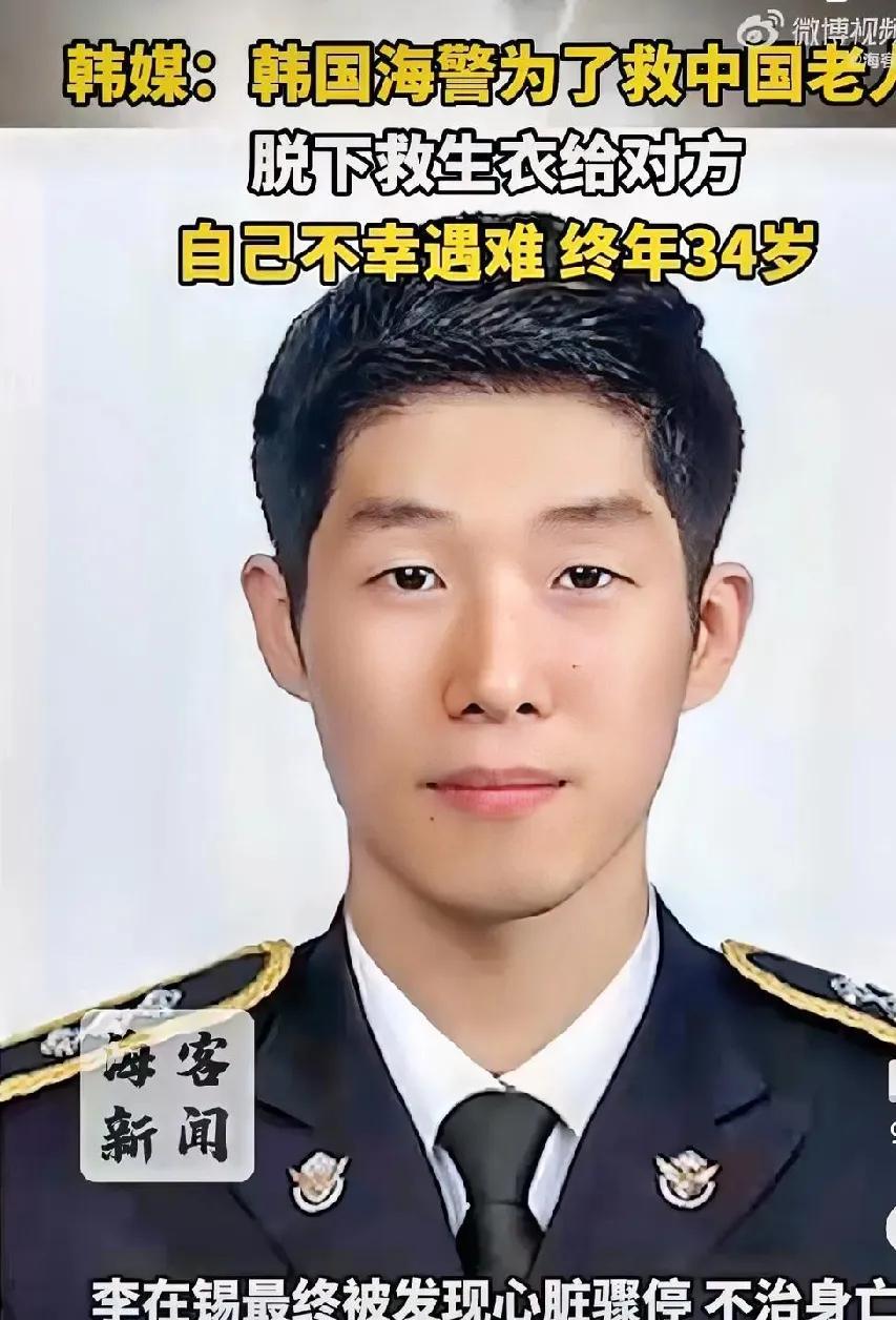 很讨厌韩国人,除了这个年轻的海警。 这韩国海警脱了救生衣救了中国老人,献出了自己年轻的生命,积极履行了救援使命,配得上“英雄”。他是有大爱的,34岁就已经是警长,履历上有多次表彰记录。只有心中真正有大爱的人才会毫不犹豫把自己的救生衣给素不相识的外国人! 救人一命,胜造七级浮屠,实事求是的说,被救的大爷家属应该发声公开道谢这个年轻人的善举。