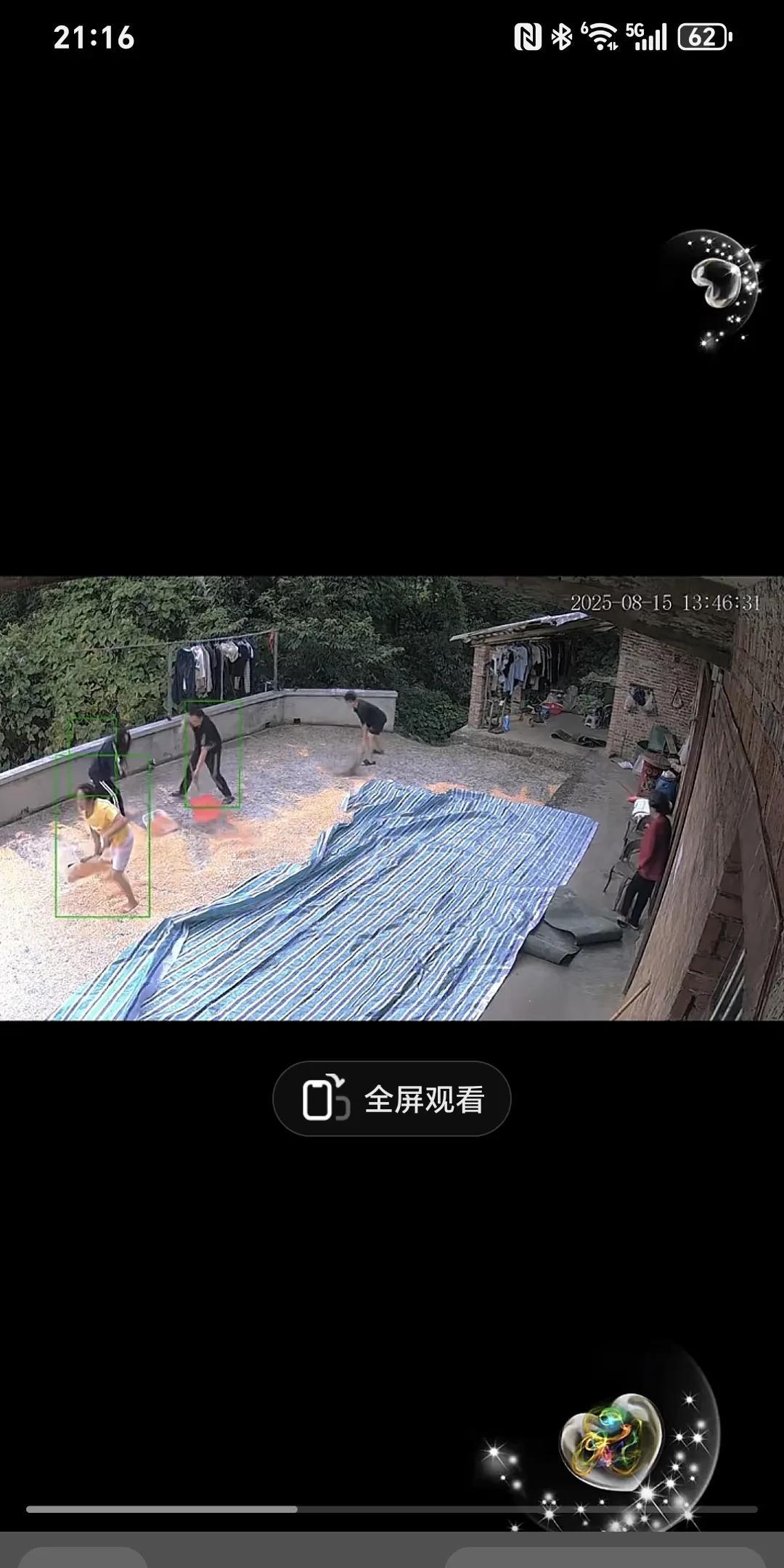 监控下的一幕…… 监控下,天台处平整地晒着大片的谷子,她从屋里出来望了望天空,想