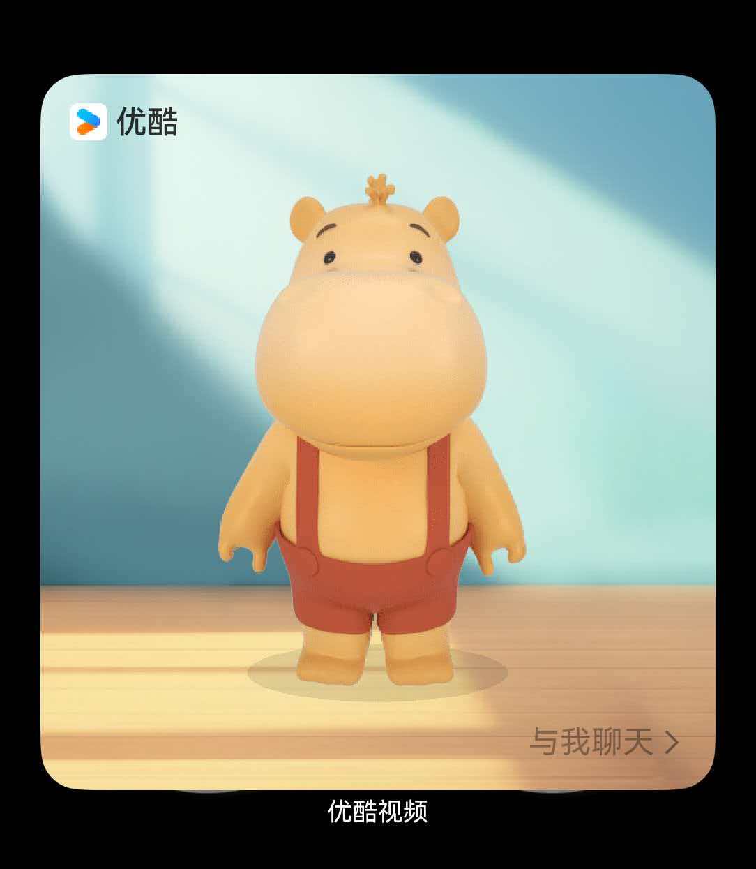 深度体验后我发现,HarmonyOS 6“互动卡片”的核心优势在于“交互维度的延伸”。以鸿蒙版优酷视频的“AI陪伴卡片”为例,其设计并未止步于平面UI。卡片中的3D河马形象拥有极高的立体质感,不仅能随着我们的点击做出挥手、跳跃等动作,还设计了特别的“出框”效果——河马的身体会自然地探出卡片边界,仿佛要从屏幕走出来。