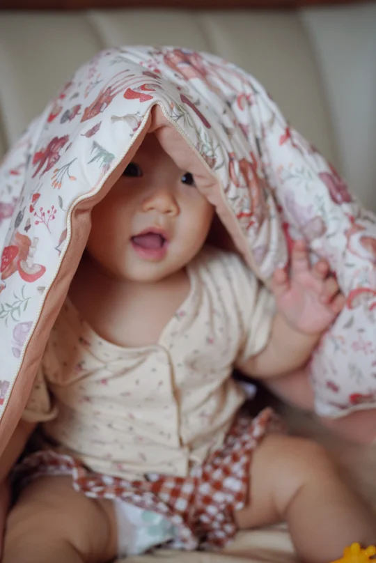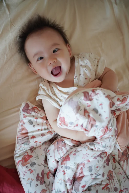 虾米宝贝在被子的包裹下,睡得好香呀~ 醒来后总是用被子跟我玩捉迷藏☺️ 如果时光能定格在这一刻也是极幸福的❤️ 英氏这款「黄油奶盖被」也太软糯了!🧈 摸上去就是暖fufu的拉绒质感, 像一头扑进一团云里~✨ 被子不冷不热,秋冬盖温度刚刚好 花色也是很ins很秋天的小鹿🦌喜欢🤎 .