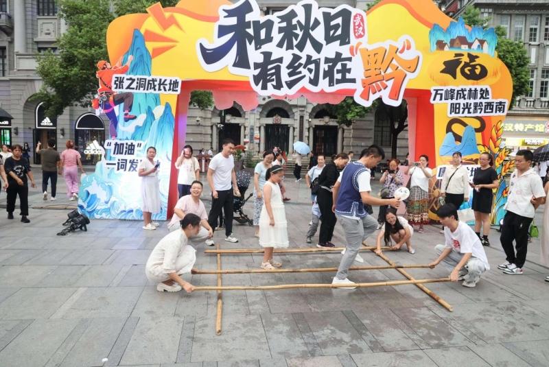 “万峰成林处阳光黔西南”2025黔西南州城市营销暨文化旅游招商推介活动(武汉站)9月14日晚在武汉市江汉路步行街启幕。通过民族风情展示、互动体验、企业洽谈、线上传播等多元形式,黔西南州向武汉市民全方位展现独特的自然风光与民俗风情。