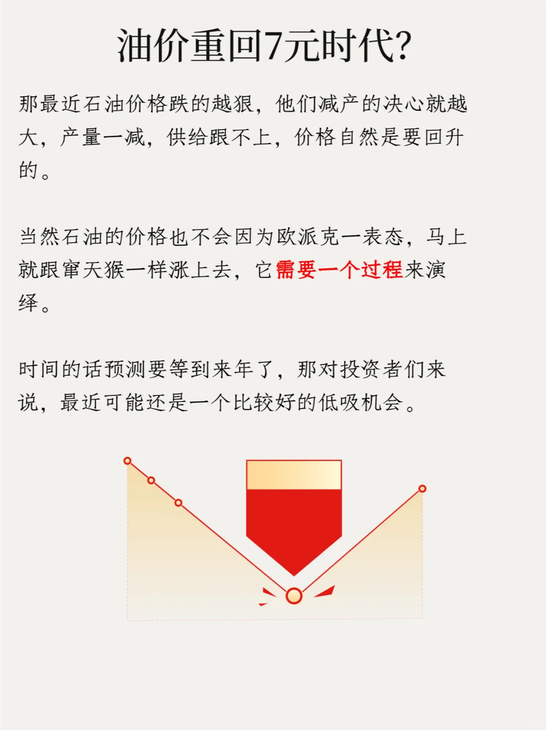 那最近石油价格跌的越狠,他们减产的决心就越大,产量一减,供给跟不上,价格自然是要回升的。