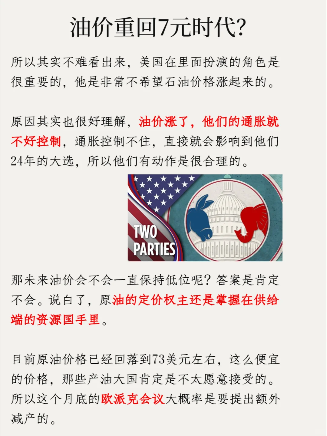 原因其实也很好理解,油价涨了,他们的通胀就不好控制,通胀控制不住,直接就会影响到他们24年的大选,所以他们有动作是很合理的。