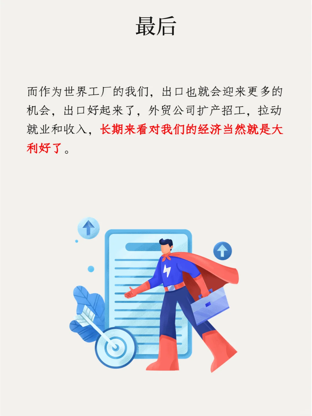 而作为世界工厂的我们,出口也就会迎来更多的机会,出口好起来了,外贸公司扩产招工,拉动就业和收入,长期来看对我们的经济当然就是大利好了。