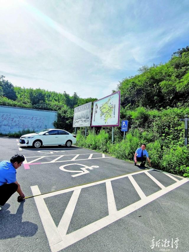 检察官正在丈量无障碍停车位。(通讯员王俊摄)