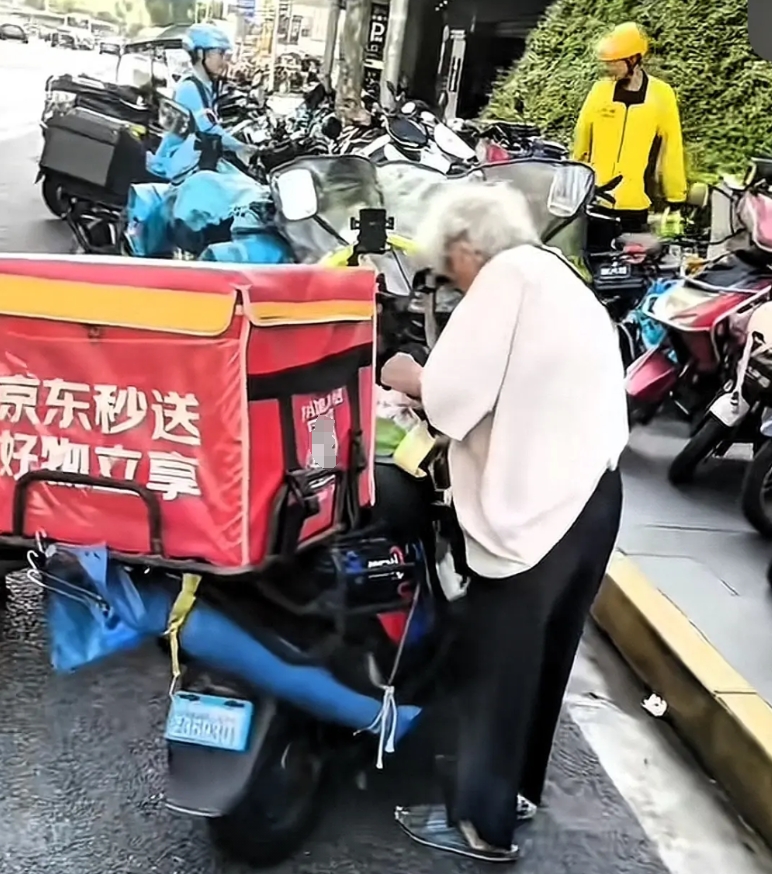 尽管小哥拍摄视频,大声制止,然而老人还是我行我素,拿走了骑手的外卖。