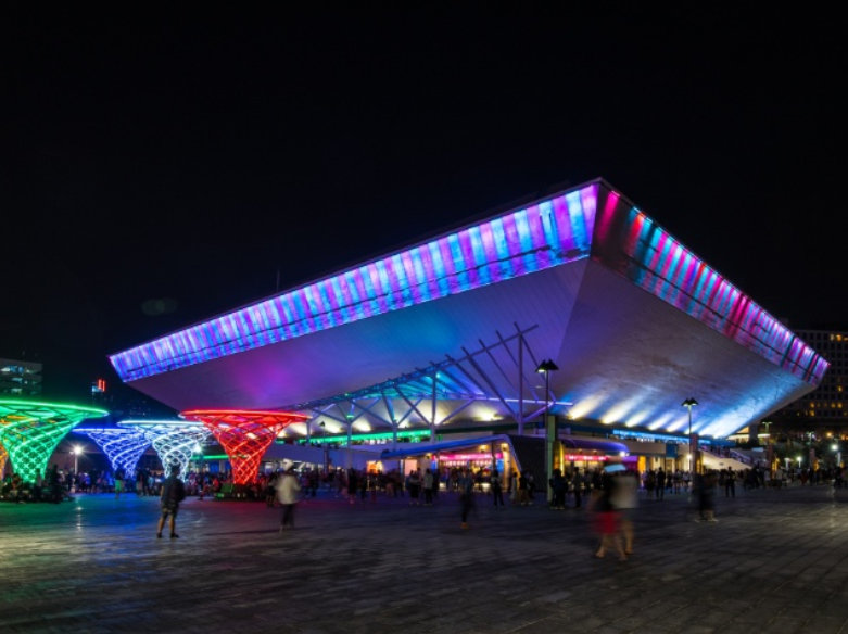 【启德体育园】可容纳5万人的主场馆以"东方之珠"为设计概念,配备开合式顶棚和灵活草坪系统,维港美景尽收眼底!七人橄榄球和击剑就在这里办,氛围感拉满~