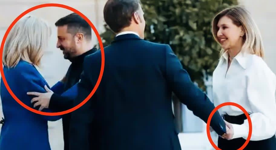 马克龙又惹妻子生气了! 马克龙和泽连斯基会面时,感觉马克龙的妻子表情很严肃,很