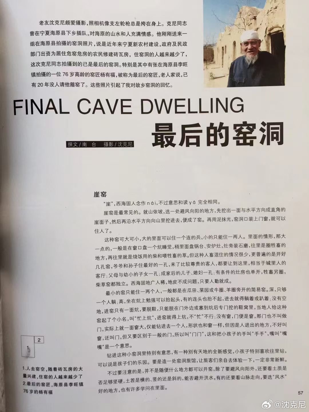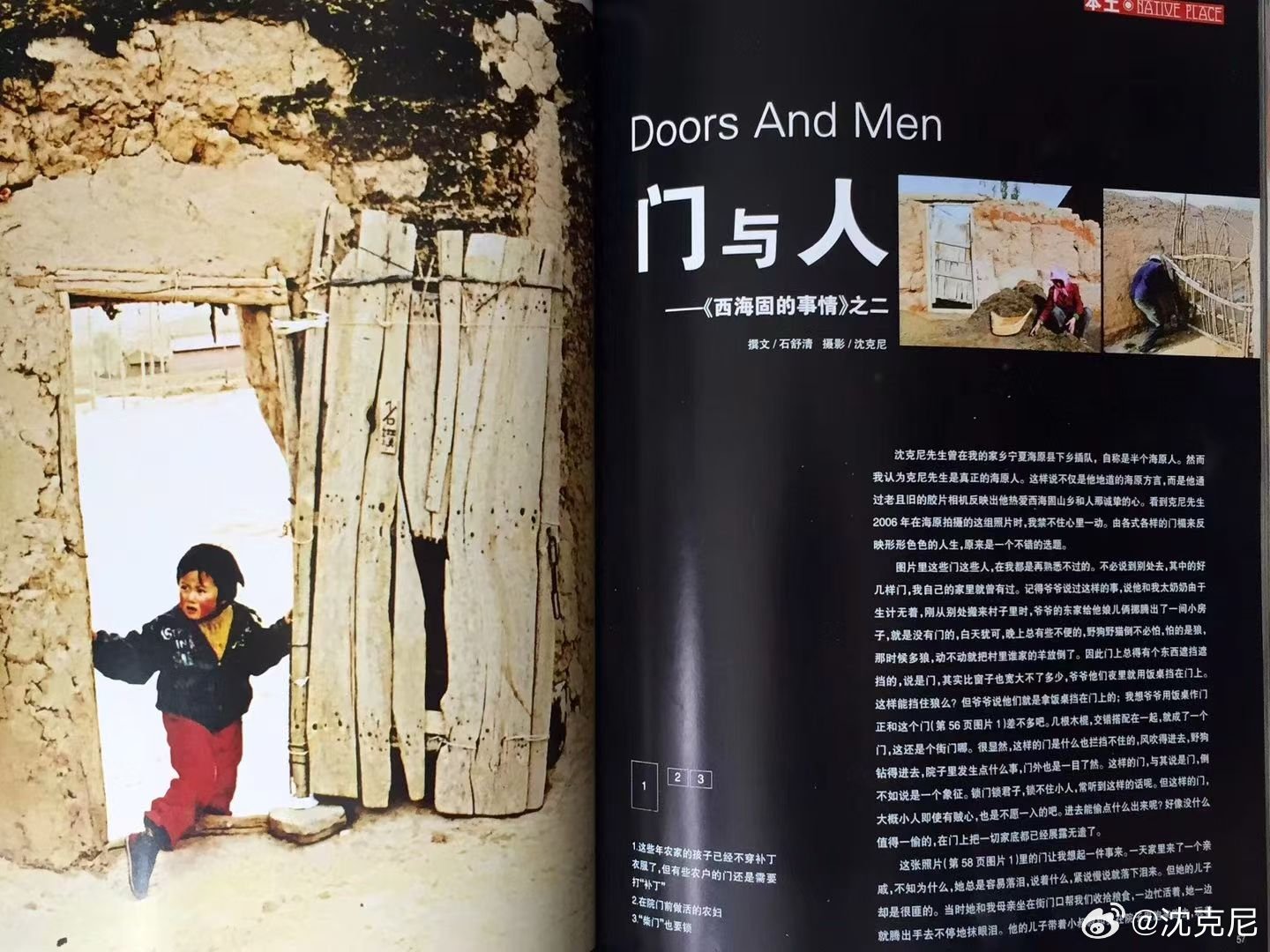 我有海原下乡插队的经历,每与海原籍的名作家南台、石舒清用海原方言交谈,颇为快慰。我曾拍摄海原乡间的专题组照,请南台和石舒清为文发表在当年的《宁夏画报》上。如《门与人》、《摩托车与人》、《最后的窑洞》、《老堡子》等等(图2、3、4)。我对西海固充满情感!今天的讲座中,我讲到日本东亚同文书院学生绘制的宁夏固原瓦亭和隆德地图时,我的西海固方言脱口而出。