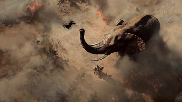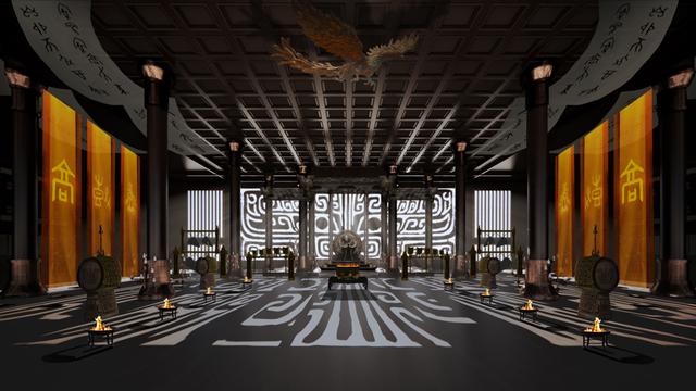 沿河而下,百米青铜巨门骤然开启,观众戴上VR眼镜,在《封神前传:一个女将军的殷商盛世》穿越3300年,跟随中国第一位女将军妇好看殷商白色的建筑、繁华的都城、高级的冶炼工艺,体验神秘的祭祀、美妙的乐舞、动人的音乐,感受金戈铁马、黄沙漫天。该片高潮古战场一段,观众沉浸于以战象、青铜、甲骨、象牙等构建而成的古代战场和殷商意象。