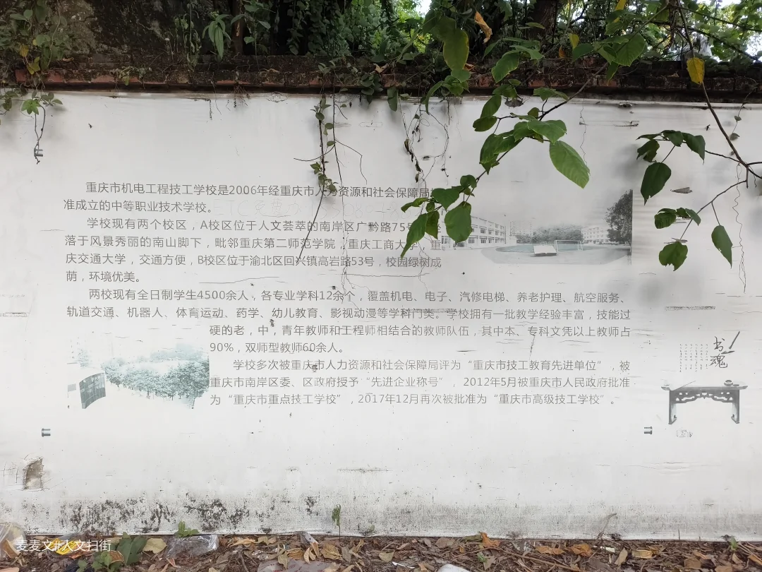 在重庆南岸区海棠溪街道广黔路75号,内环快速路四公里立交旁,曾坐落着重庆市机电工程技工学校的主校区。它坐落于风景秀丽的南山脚下,曾经书声琅琅,承载着无数学子的青春梦想。 遥想当年,它毗邻重庆第二师范学院、重庆工商大学、重庆交通大学等高校,在浓厚的人文氛围与学术气息中,机电工程技工学校也绽放着独特的光彩。校园里,师生们怀揣着对知识与技能的渴望,在这片土地上耕耘、成长。 然而时光流转,如今这座老校区已显露出废弃之态。曾经色彩明快的教学楼,墙面斑驳,窗户残缺,仿佛在无声诉说着岁月的变迁。操场上的绿草不再整齐,跑道也失去了往日的活力。周边曾经热闹的景象不再,只留下寂静与荒芜。 它见证了学校曾经的辉煌与热闹,也目睹了如今的落寞与沉寂。或许在未来的某一天,这里会被重新规划、改造,以全新的面貌迎接新的使命。又或许它会一直这样静静伫立,成为老一辈机电人心中那段难忘时光的永恒纪念,在城市的角落默默沉淀着属于它的故事。