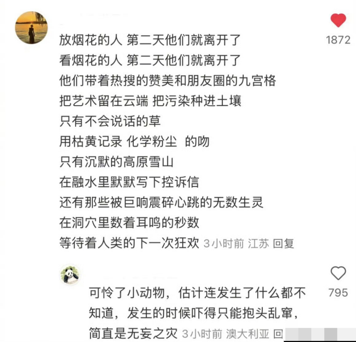 蔡国强“大闹天宫”烟花秀:一场惹众怒的高原艺术争议 蔡国强在西藏喜马拉雅山搞了场叫《升龙》的烟花秀,表演完致辞时一句“感谢大家支持我们在这大闹天宫”。 蔡国强说这是圆了自己年轻时的梦,想让“腾飞的龙”给世界传点正能量。网友并不买账,直言这哪是“大闹天宫”,分明是“大闹高原生态”。他感谢的江孜县乐龙乡那些部门居然敢在草原防火区批烟花燃放,这是不是违反了《烟花爆竹安全管理条例》? 听说这项目之前在日本富士山、法国圣维克多山都因为怕破坏生态被拒了,咋到中国就一路绿灯?不少人怀疑审批是不是有“双重标准”。 争议的核心首先是生态破坏,那地方海拔4500到5500米,全是高寒草甸,地表10厘米厚的草毡层是百年才形成的,结果烟花一放,爆破冲击波直接给撕裂了。专家说自然恢复至少得50到100年。 主办方说用的是“环保材料”,可高原年均温才-5℃,微生物活性低得可怜,分解材料的速度慢好几倍,残留的铜、钡这些重金属,搞不好还会污染冻土水源。还有那些野生动物,烟花噪声10公里外都能听见,雪豹吓得弃巢跑了,为了保护鼠兔,放的盐砖鼠兔根本不吃,巢穴反倒被直接毁了。 在藏文化里,喜马拉雅山那是神山,这么大的巨响,当地村民都觉得是“惊扰山神”了,还说现场气味刺鼻,担心动植物受影响。更讽刺的是,这次活动的赞助品牌始祖鸟,平时总喊着“敬畏自然”,结果转头就搞这事,这不就是打着艺术的幌子搞商业作秀,把自己说的价值观抛到脑后了? 当地居然以“环保材料+最低风险等级”为理由,没搞专业环评,就靠乡县村三级审批就通过了,这程序也太不正规了。现在大家都在等说法,如果真确认生态被破坏了,蔡国强和始祖鸟可能要面临罚款、赔偿,甚至负刑事责任。要是审批本身就违规,地方政府也得担责。 目前蔡国强和始祖鸟倒是道歉了,说自己“考虑不周”,承诺配合第三方评估,但压根没说具体怎么补救。始祖鸟的英文道歉信还说“正和中国团队沟通调整”,被网友骂是“甩锅”。蔡国强干脆关了微博评论区,大家都觉得他俩没诚意。 现在日喀则市已经成立调查组去现场了,说会依法处理,但还没出结果。 这事就是艺术、商业的野心没守住生态的红线。青藏高原是“亚洲水塔”,这么脆弱的地方,搞这种高风险活动,必须得谨慎再谨慎,没十足把握证明安全,就不该轻易批准。 自然的价值是永恒的,可不能为了一时的绚烂,留下永远的伤痕。