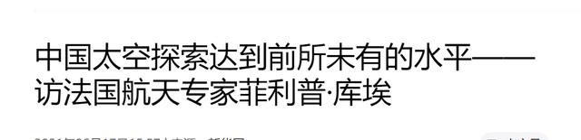 新华网在2021年06月17日关于《中国太空探索达到前所未有的水平——访法国航天专家菲利普·库埃》的报道