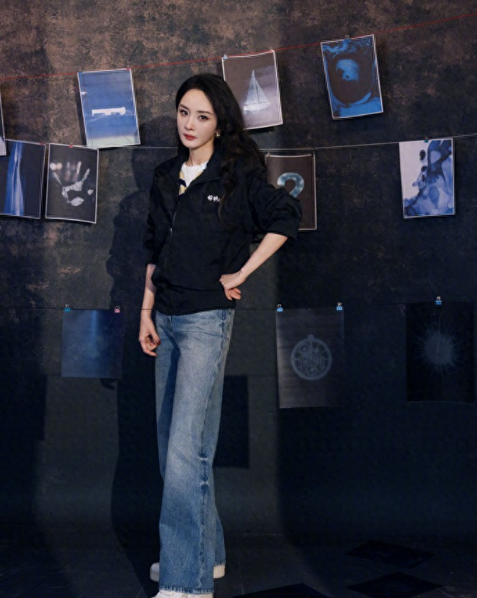 杨幂参加了新电影的宣传活动,她打扮的十分休闲朴素,脚上穿着增高平底鞋,下身是一条浅色的宽松牛仔裤,上身的黑色外套上还印刷着他们剧组的名字。