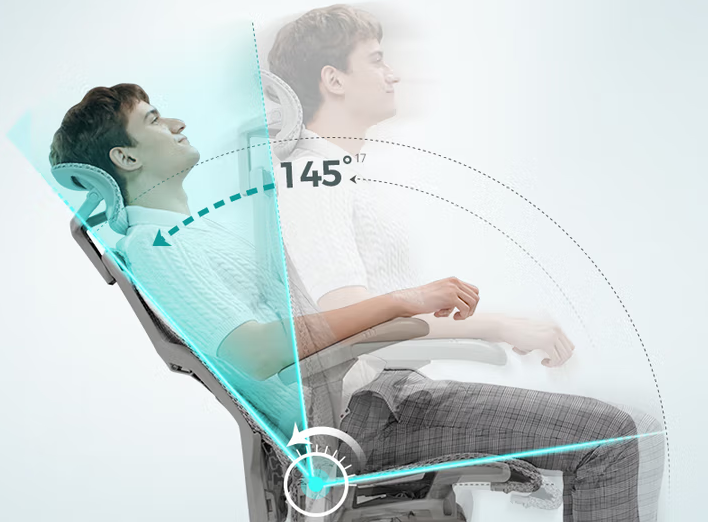 支持145°无极后仰,过程顺滑稳定,搭配3D可调释压枕+6D联动扶手,无论是高强度办公、学习,还是午休放松,一把椅子就能应付,不需要频繁换姿态硬扛。