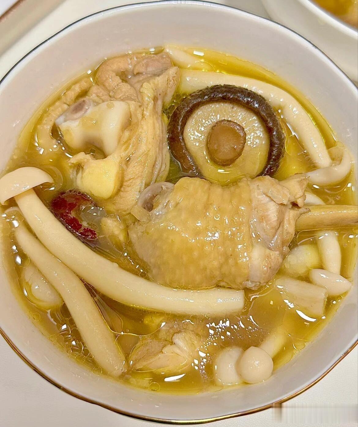 鸡胸肉50g、平菇一把、金针菇一小撮、冬虫草适量、姜丝、盐、少许胡椒粉。