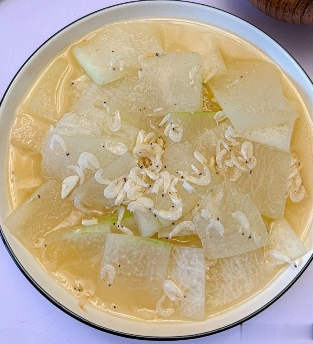 4. 加入适量清水,放入虾皮,大火烧开后转小火炖煮15分钟,直到冬瓜软烂,加入适量盐调味。
