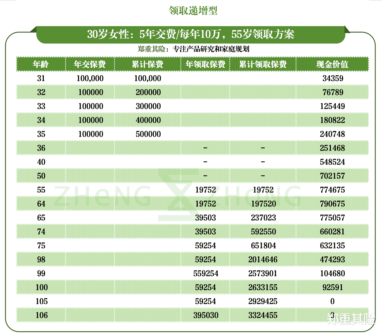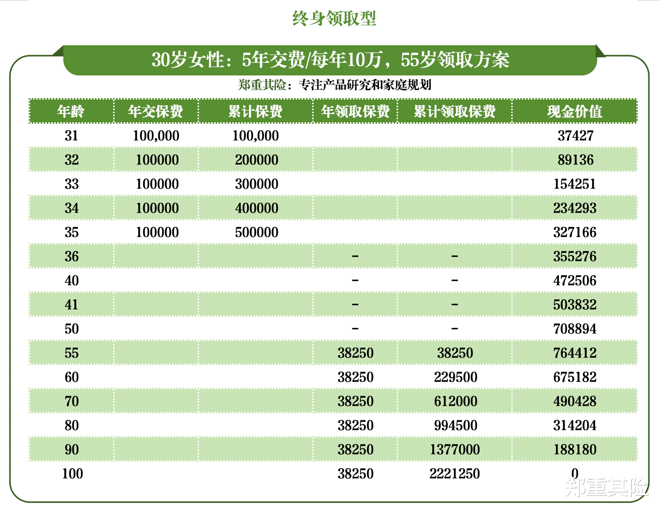 到100岁,还有50万祝寿金,累计领取222万,4倍保费。