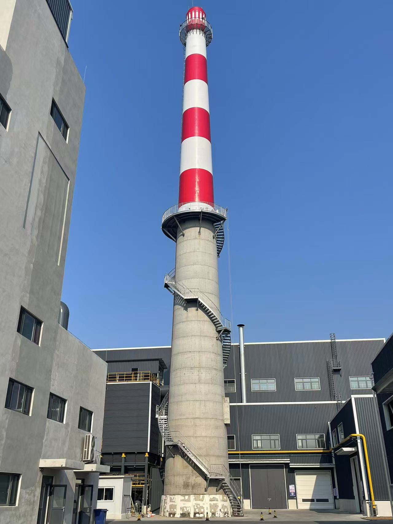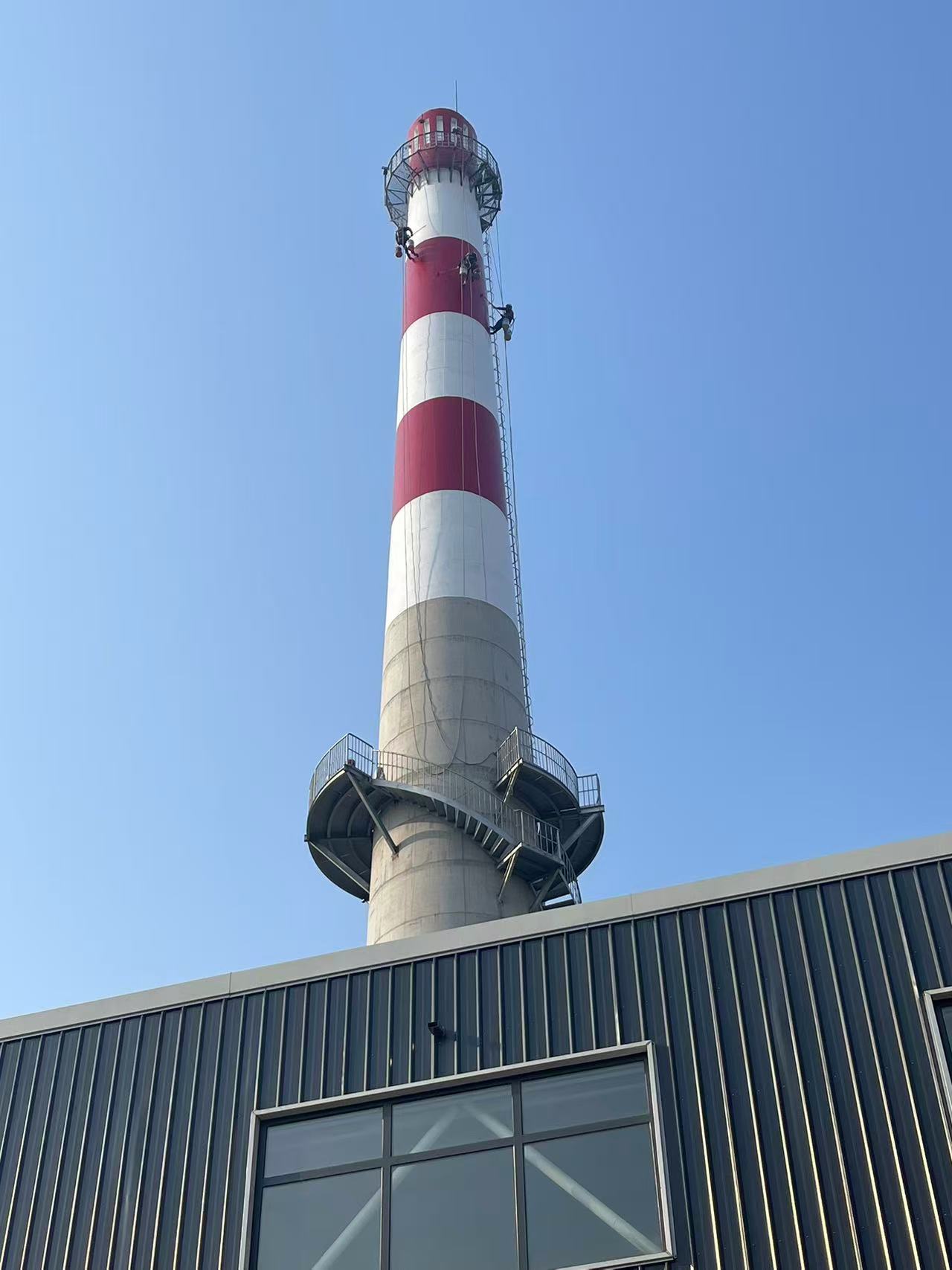 2.外观与品质双焕新:烟囱外壁航标线条规整、色泽鲜亮,有效改善设施外观风貌,契合厂区标准化建设要求,彰显企业规范运维的良好形象。