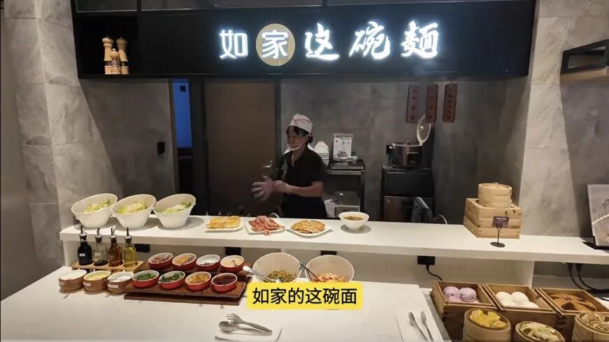 如家的这碗面在广州是广州特色的牛腩粉,而且还配了多款的广式点心,这样的配置可以给房间溢价打下基础。
