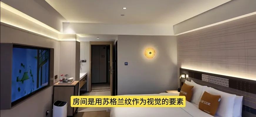 首先如家精选这个品牌主打现代简约的英伦风,而苏格兰格纹就是4.0产品核心的视觉元素,这些元素贯穿到外立面、地面和墙面,甚至是员工的制服。