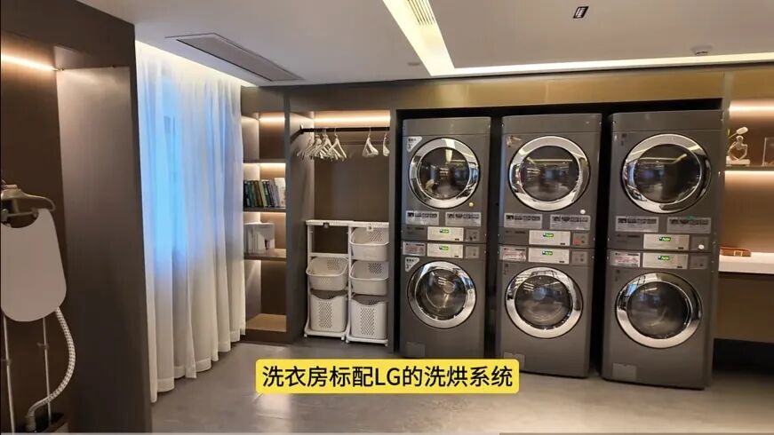 洗衣房标配LG的洗烘系统,一个小时就可以洗好烘干。