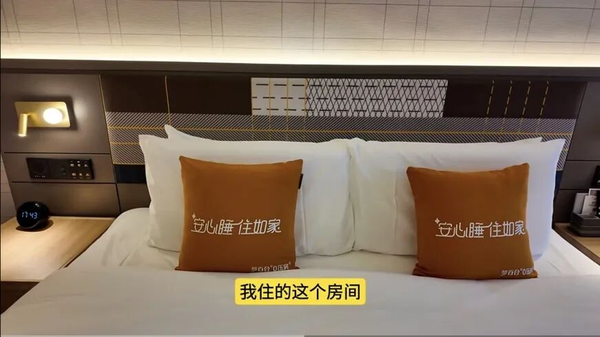 我还留意到一个细节,以前如家精选的床架是偏高的,这次它的床垫和床品的高度也做了一些调整,特别是对女性客户友好,同时会让整个房间的空间感会更足,我住的这个房间床垫和枕头都是梦百合的零压系列。