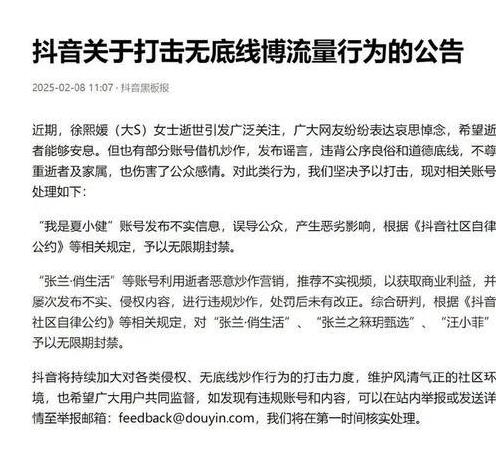 可这流量,是建立在道德的悬崖边上,甚至直接踩线了!利用大S去世的悲痛博同情,利用各种谣言炒作,这操作,我只能说,low到尘埃里了!抖音封号,一点都不意外,活该!这就像一个走钢丝的,一开始走得稳,走得险,观众看得心跳加速,可一旦失足,摔得那叫一个惨不忍睹!