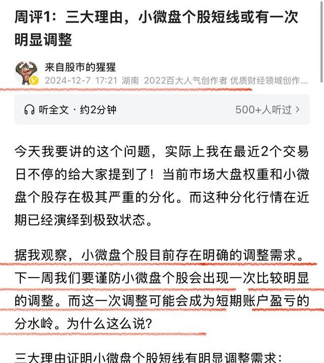当然对于小微盘个股调整的风险,我早在两周以前就给大家吹哨了。只是大家都沉醉其中,无法自拔。还记得我在那12月7号的时候就告诉大家,小微盘股有着明确的调整!而且当时我把话说得非常清楚,这一次小微盘个股的调整,很有可能成为涨幅短期的胜负手和分水岭。
