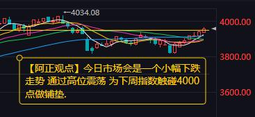 【综合判断】今日大盘大概率以高位震荡为主,全天看总体会有小幅下跌,为下周大盘指数触碰4000点做铺垫。