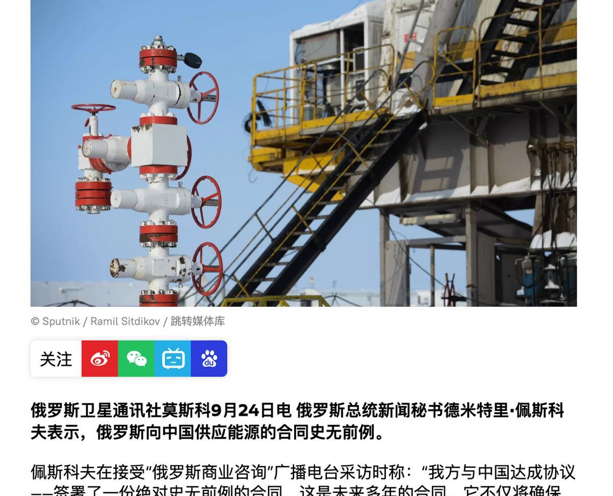 难怪川普在联大情绪失控,克宫突然向全球宣布:中俄达成“史无前例”的战略合作 川普在联合国大会严重超时4倍的演讲冲上了外网热搜,包括美媒在内的很多外媒都发现他当时明显“情绪失控”。随着克里姆林宫向全球宣布,中俄达成一项“史无前例的能源战略合作协议”,外界才明白川普表现异常的原因所在。CNBC、卫星社等外媒报道,俄罗斯总统发言人佩斯科夫证实,俄中本月初在北京签署了“面向未来多年的能源供应合同”。 他强调这是一份“绝对史无前例的合同”,不仅将在未来十几年乃至数十年向东大供应数量惊人的天然气和石油,其产生的直接效益和溢出利益还将惠及俄罗斯所有相关地区。俄媒披露,俄中总共签订了4份战略合作协议,签字双方分别为俄罗斯天然气工业股份公司和中国石油天然气集团公司。 西方媒体则强调,这些协议是在川普政府向欧盟、印度、东大等发出威胁,要求其不得进口俄罗斯石油的背景下签署的。华盛顿外交人士称,白宫认为这等同于当面打脸。因此川普在联大演讲时,不顾15分钟的时间限制要求,足足说了1个小时,而且大部分时间都是脱稿“猛喷”,既威胁将对俄罗斯采取严厉措施,而且还要迫使欧盟跟进,又污蔑东大的清洁能源战略是“假象”,因为其发电使用最多的是煤炭。 川普警告称如果东大、欧洲以及北约国家不停止购买俄罗斯石油,将发生“严重的事情”。这番演讲被很多西方媒体评论为纯属情绪输出,而且“语无伦次”。法新社等还评论称,美国的警告正在快速失去威慑效果。俄罗斯这次公开与东大签署的战略性能源供应协议,不仅涉及的天然气和石油供应量“极其巨大”,更建立了俄罗斯几乎所有能源产区与东大的供应链,而不再仅仅局限于西伯利亚和远东地区。 这标志着俄中能源合作达到前所未有的程度,难怪佩斯科夫毫不掩饰地表示,欧洲已经不再是俄罗斯能源的溢价市场,东方市场正在取而代之。