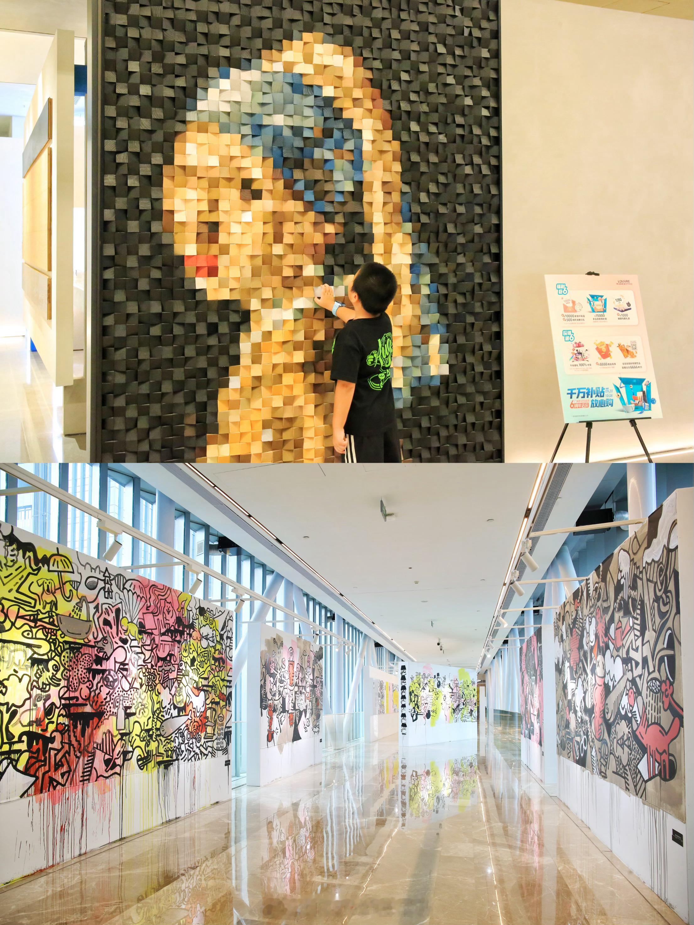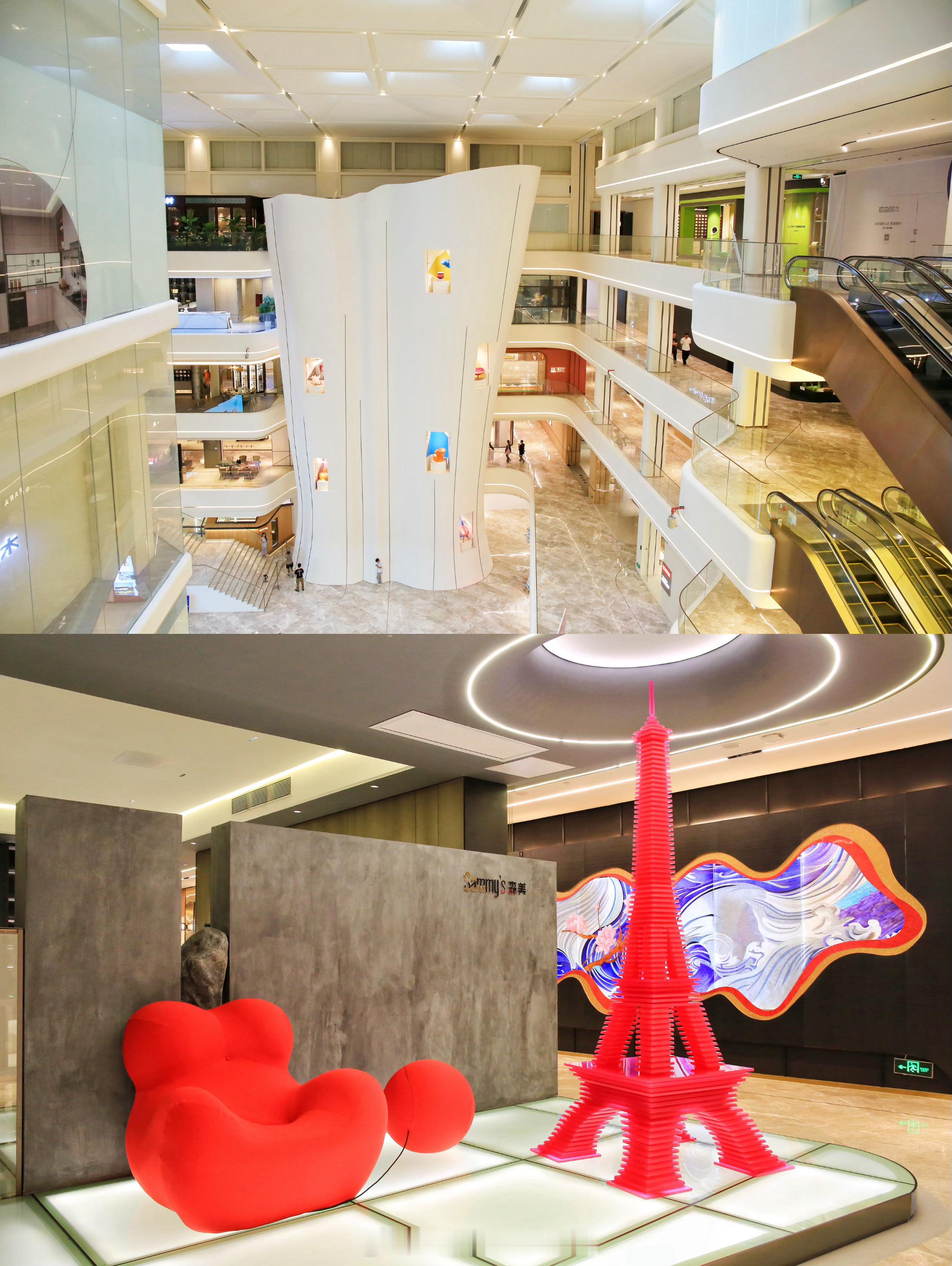 🍬商场里有不少“亲子友好角落”:服务台提供饮用水和小糖果,舒适的休息区随处可见,逛累了可以试试顺德渔村,还有几家咖啡餐吧。商场中庭还有不少艺术装置,还有三个展览免票参观,带娃走走逛逛,收获一下家装灵感非常惬意~