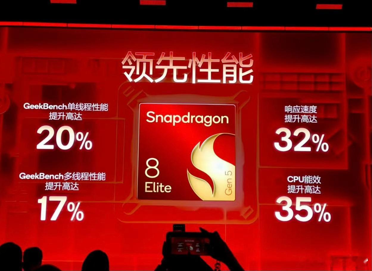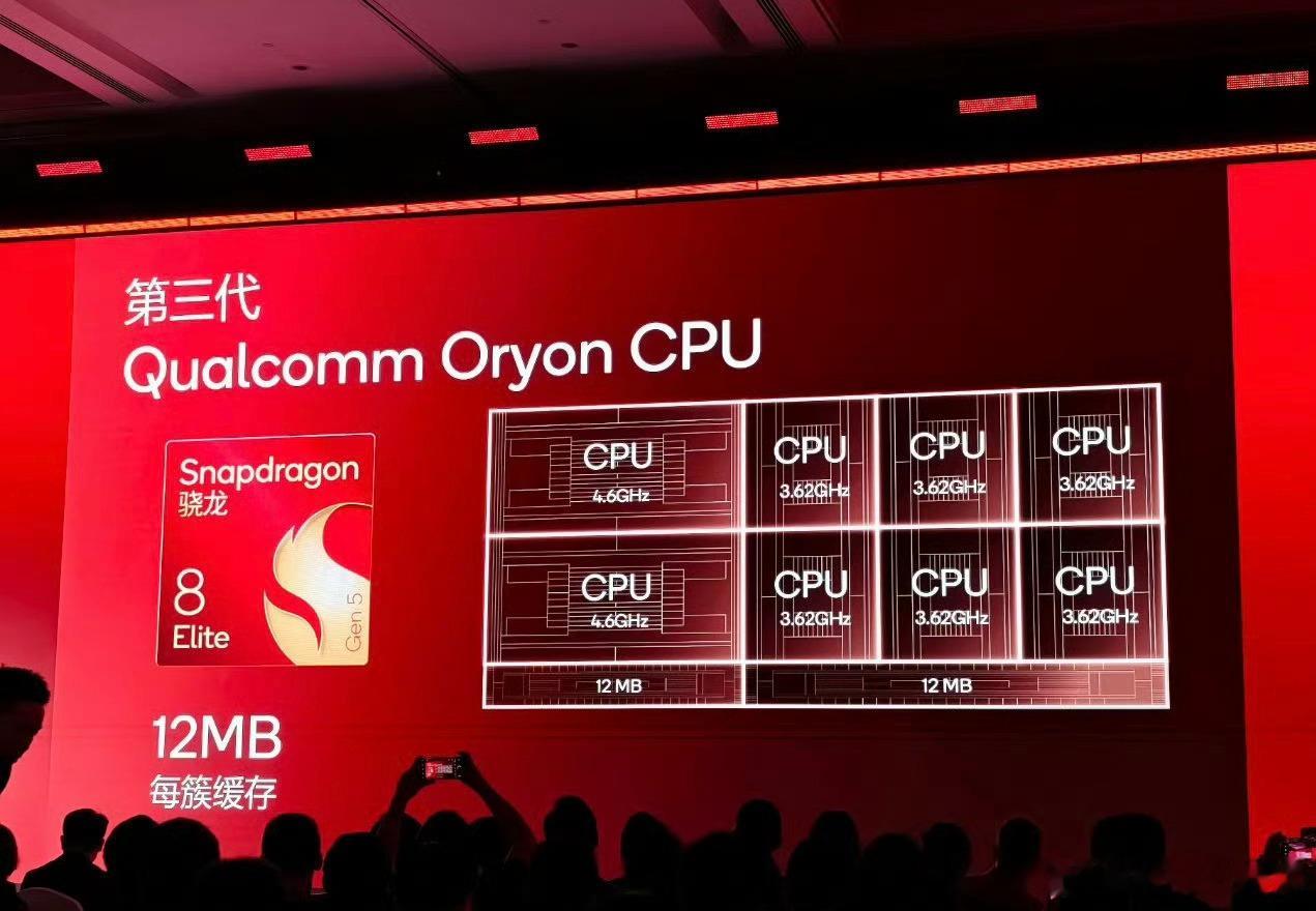 朋友们,第五代骁龙8至尊版来了,第三代高通Oryon架构,台积电第三代3nm工艺,由2颗主频为4.6GHz的超级内核 + 6颗主频为3.62GHz的性能核心构成,8MB SLC缓存,性能提升39%,功耗下降43%,GPU是Adreno 840,给了18MB的独立高速显存,光追性能提高25%、性能提升23%、能效提升20%。支持四通道LPDDR5X内存5300MHz + 四通道UFS 4.1闪存,骁龙X85的5G基带,20-bit AI ISP,卢伟冰也来现场吹了一波,小米17系列今晚全球首发,有没有准备冲的朋友?[doge]