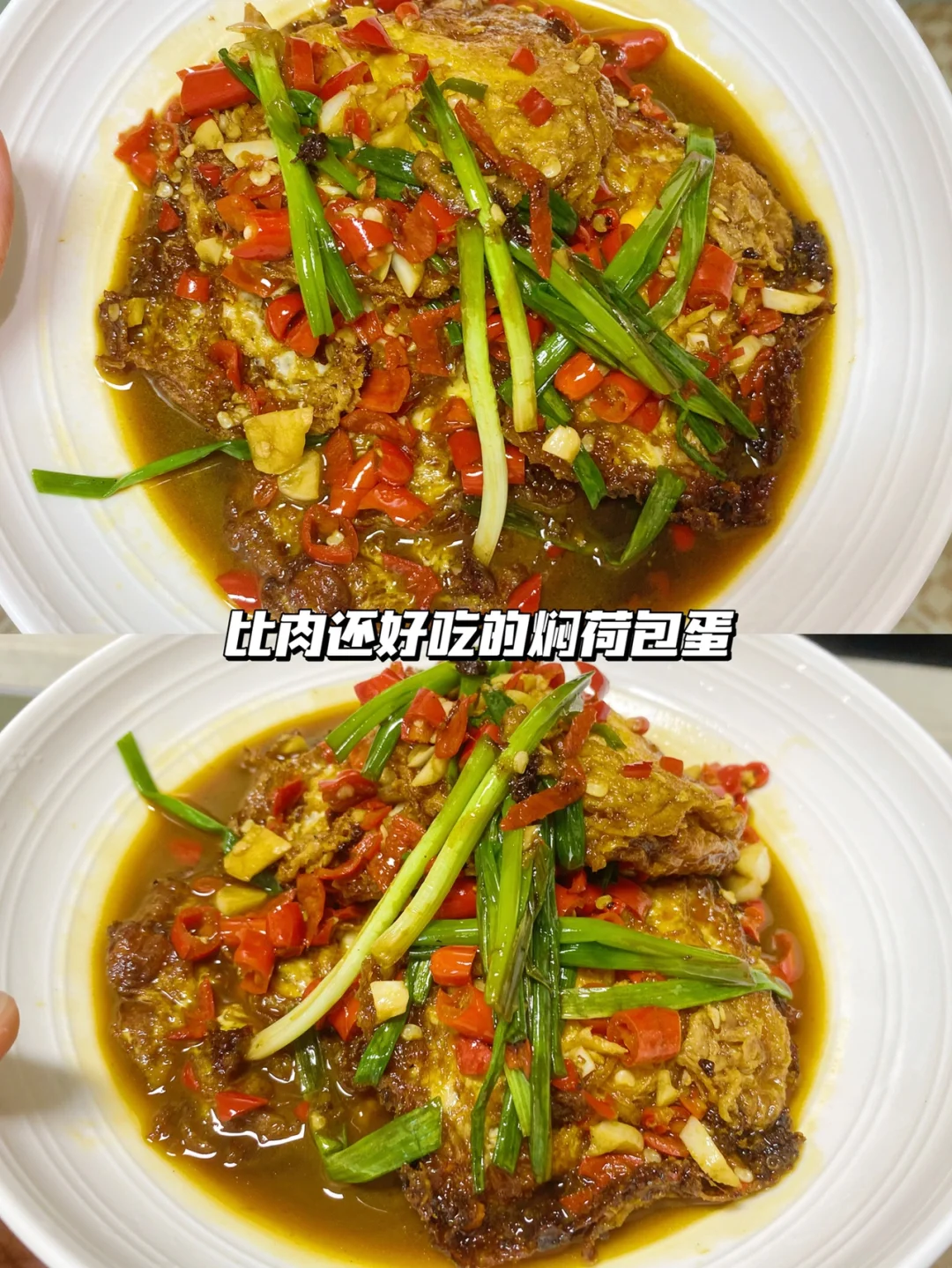 ✨食材:鸡蛋 小米椒 蒜 葱 1⃣️:鸡蛋一个个煎熟,喜欢焦一点的就多煎一会,小米椒蒜末切碎,葱切段备用。 2⃣️:锅里倒油炒香蒜末辣椒🌶️,加一小碗水 放半勺酱油/两勺生抽/一勺蚝油一丢丢白糖 鸡粉煮开,再把煎蛋放进去转中小火煮四分钟左右,过程中可以用锅铲淋汤汁在鸡蛋表面。起锅前加葱段再翻炒两下。 我煎了五个鸡蛋 ,鸡蛋煎焦一点真的好香~咬一口蛋白部分还会爆汁[大笑R] 好好吃饭呀🤘🏻