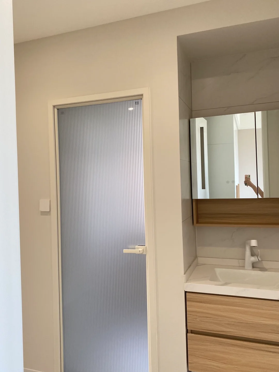 3、卫生间建议选择超白长玻➕油砂,油砂比磨砂更细致,看着不会太粗糙,透光不透人