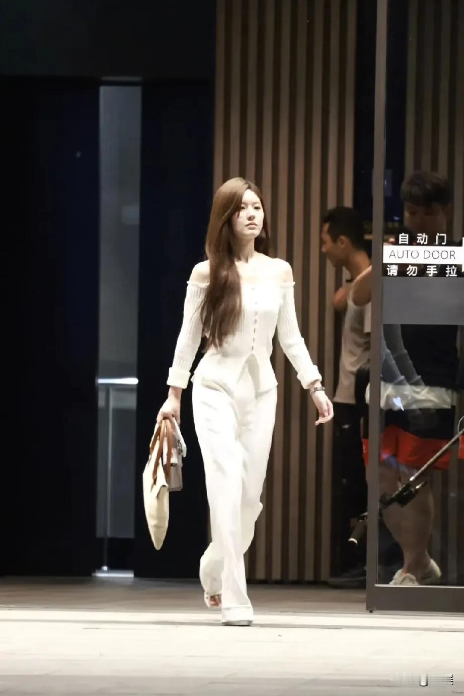 赵露思穿着白色西装走路。