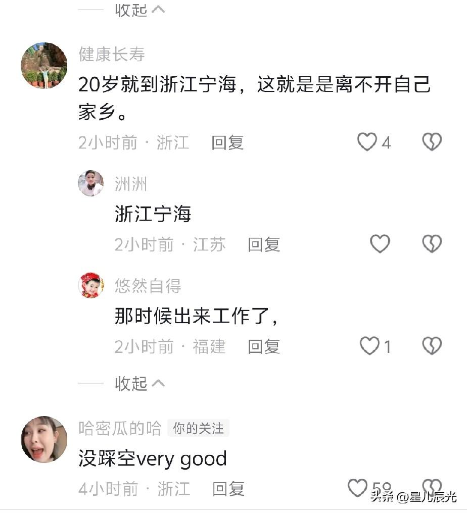瑾汐去到了20年前曾去过的浙江宁海, 这个视频是瑾汐用小号发布的, 她20岁的照片也被网友找到。 她说:“这里的变化还是挺大的,和以前很不一样。” 视频里,她所处的位置位于水边,要是不小心,还可能一脚踏空掉进水里,网友们都为她捏了一把汗。看来瑾汐20年前她就曾到这里打过工,瑾汐之前也说过,没嫁人之前,她挣的钱很少,有时候还得靠哥哥接济一点。 网友还找出了瑾汐20年前的照片。那时候的她留着短发,头发带有层次感,穿的是红色衣服,满满的少女感。现在的瑾汐成熟了许多,可能是因为要养三个儿子、压力较大的原因。不过现在的她,脸上看起来还是挺瘦的。 二哈也回复网友了,说她们马上就要直播带货。瑾汐忙完儿子上学的事情后,接下来肯定要忙着赚钱,好养活三个儿子。