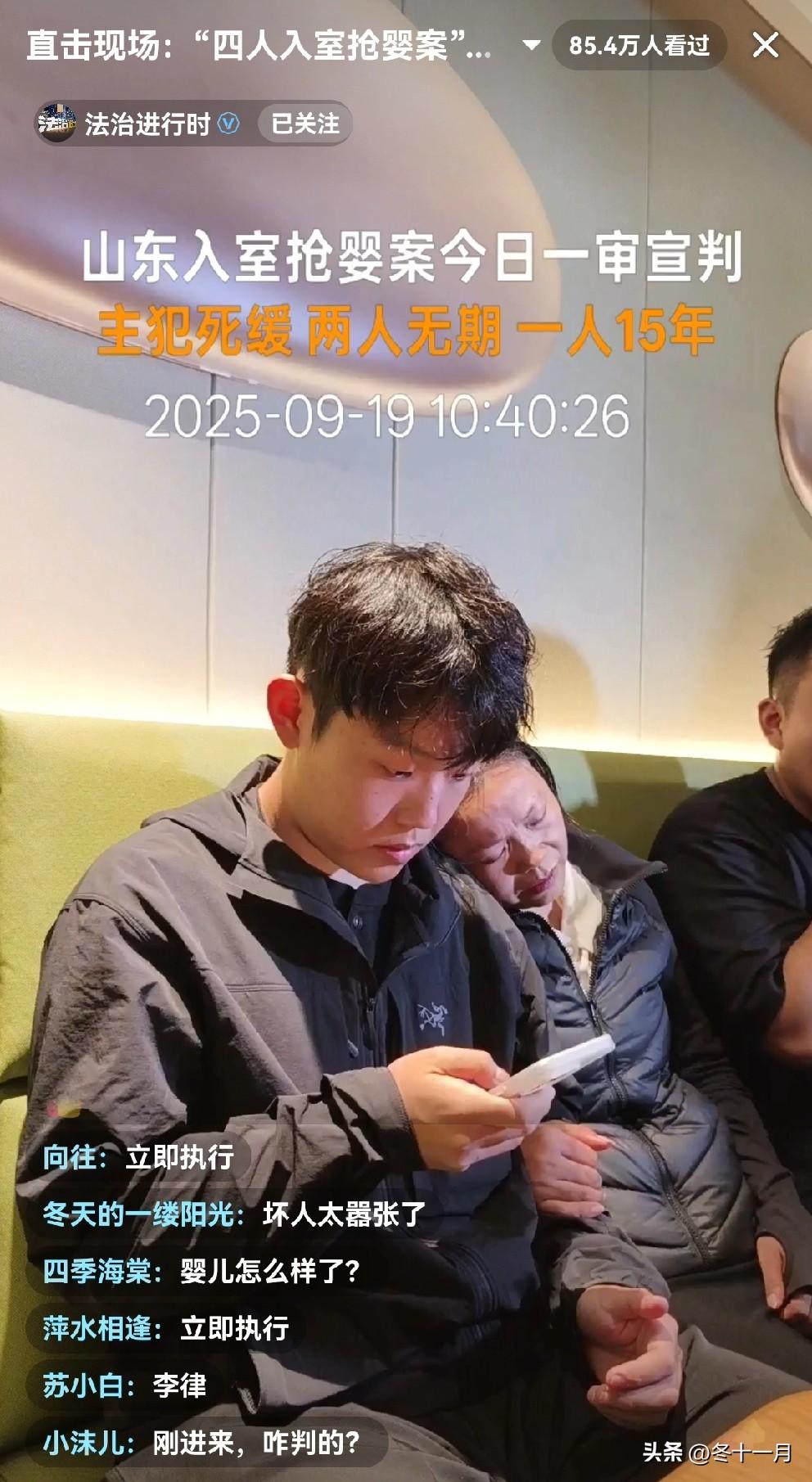 太让人气愤了。罪犯的态度太嚣张了,被宣判后当庭辱骂法官和被害者。姜甲儒正在接受媒体采访。他是山东入室抢婴案的当事人,姜甲儒就是当年那个被入室抢走的八个月的婴儿,现在他长大了。 今天姜甲儒的案件一审宣判,四名入室抢劫孩子的罪犯被判。 宣判结果是主犯死缓,两人无期,一人15年。 这伙罪犯当年入室抢劫孩子,把老人打伤,然后把婴儿卖掉换钱,姜甲儒的父母找寻孩子,找了17年,最后在现代技术和警方的帮助下,才找到了姜甲儒。 姜甲儒的家人打算上诉。