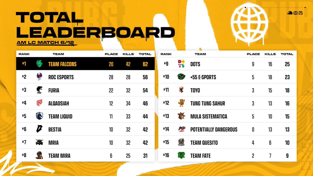 顶尖战队展现出惊人实力,其中Falcons暂居榜首!明日将是晋级总决赛的最后机会,更多精彩对决等你见证!