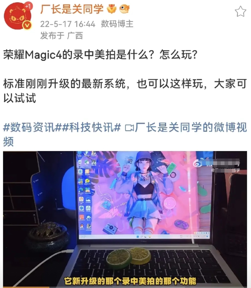 水军们是真多,你们的文案是真详细,荣耀在2022年的Magic4上就发布录中美拍了,然后现在友商的新品直接招呼都不打一声,拿来主义直接用了