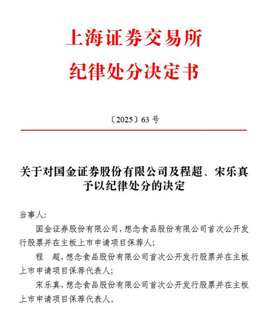 不过,宋乐真的问题并不是出在对于沐邦高科督导的失职,而是出在IPO项目——想念食品:“保荐人在发行上市申请过程中,存在保荐职责履行不到位的情形。”
