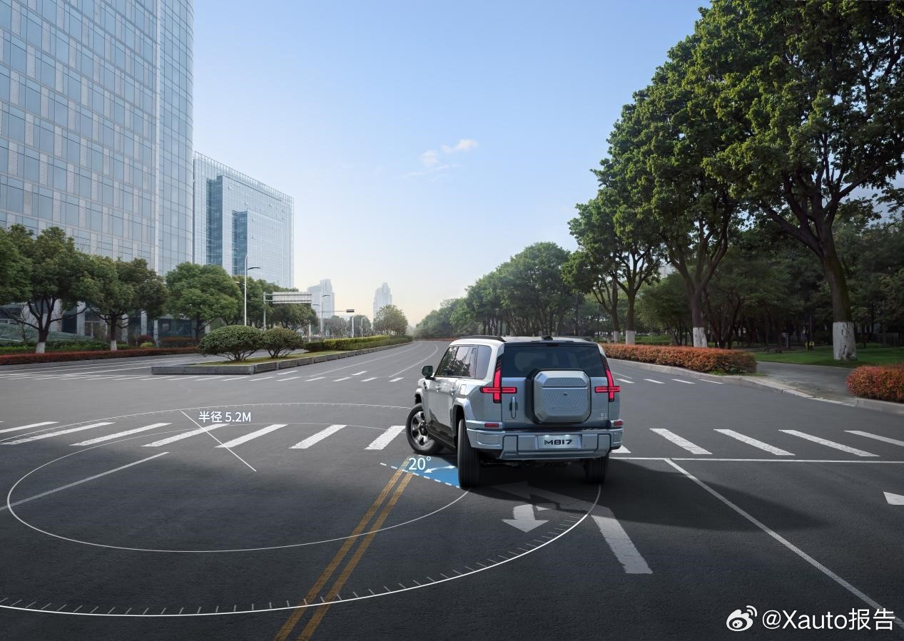 猛士M817 拥有“磐石底盘+极猛动力+猛士智能全地形系统”三大核心技术。双向20°后轮转向让5.1米长车身拥有仅5.2米最小转弯半径,城市窄路掉头、野外绕障格外灵活;