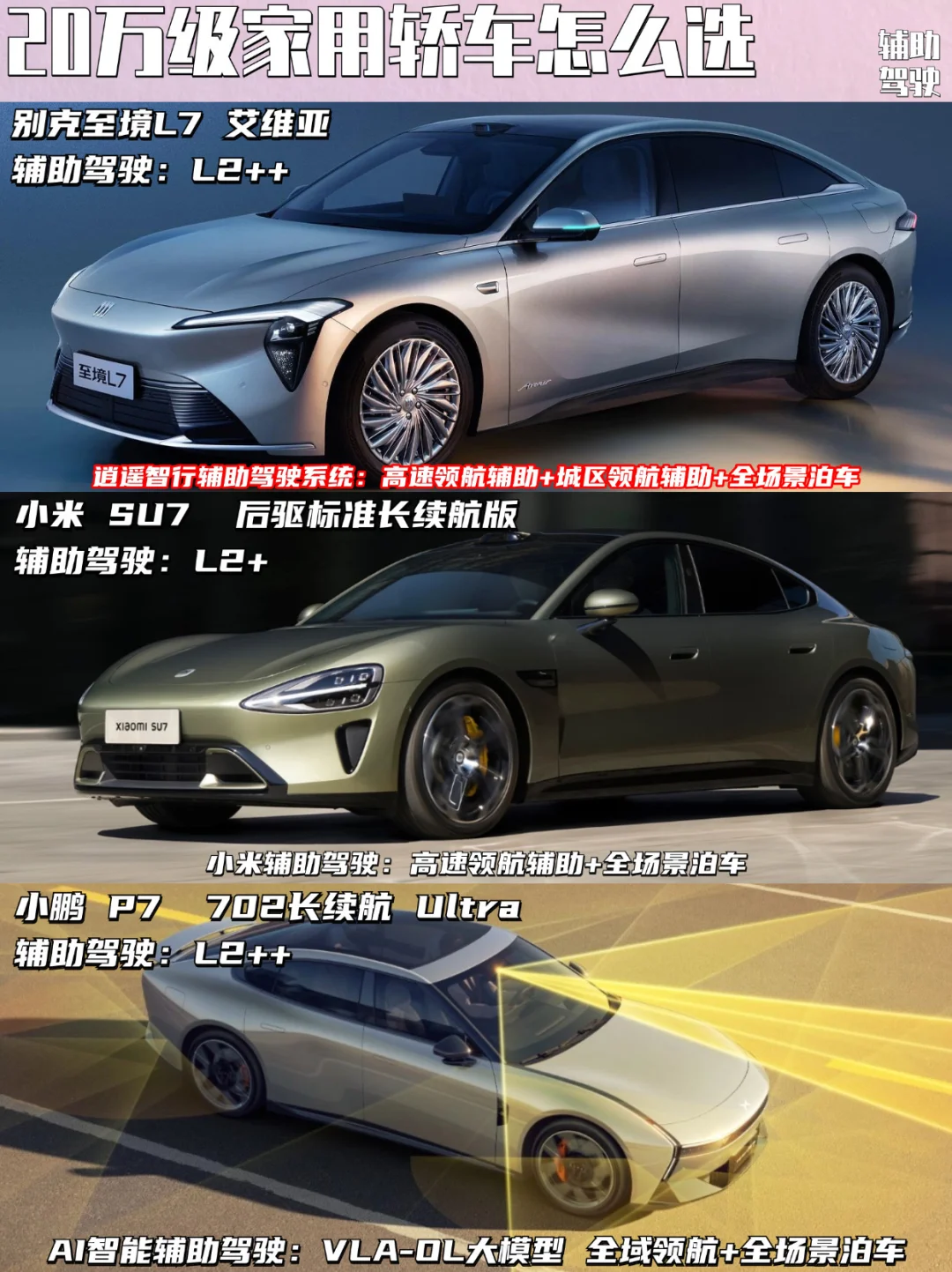 小米SU7 & 小鹏P7:智驾功能齐全,但别克至境L7在复杂路况和泊车效率上更从容